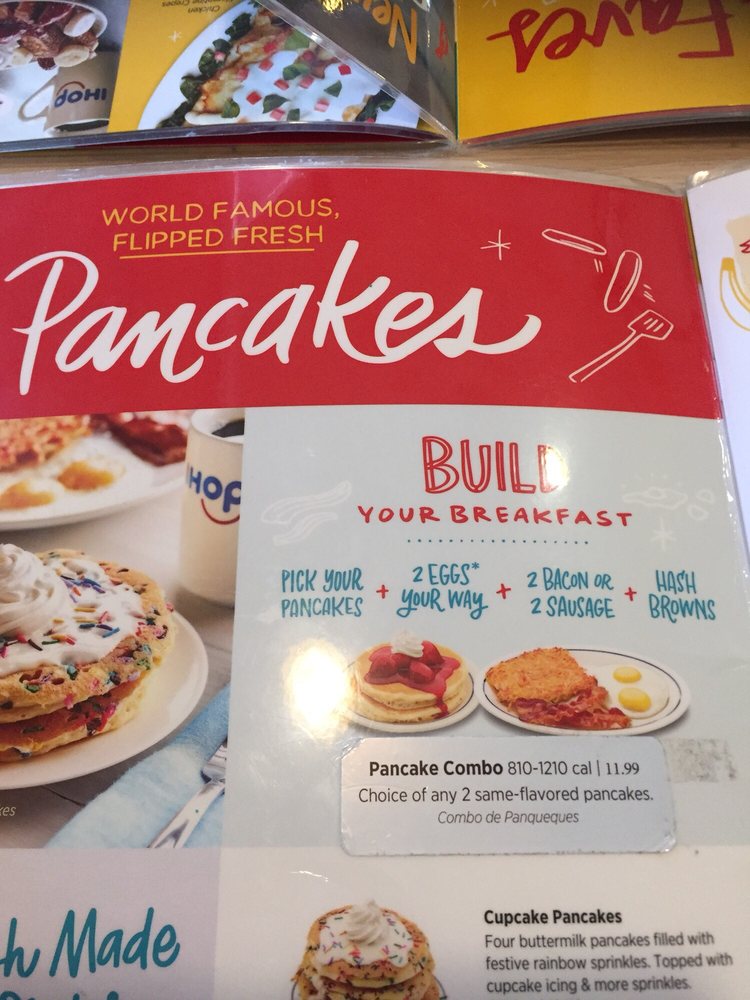 8 of our world famous buttermilk pancakes, 4 servings each of scrambled eggs and golden hash browns, 8 hickory-smoked bacon strips, and choice of 2 pancake toppings. Serves 4. Available for IHOP N GO only. Not available for dine-in.